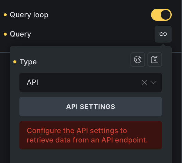Section titled “Getting Started”A new Query Type called API lets you connect to and consume data from REST API. Once configured, the API response is parsed and rendered using Bricks’ dynamic tag system—just like any other query loop.