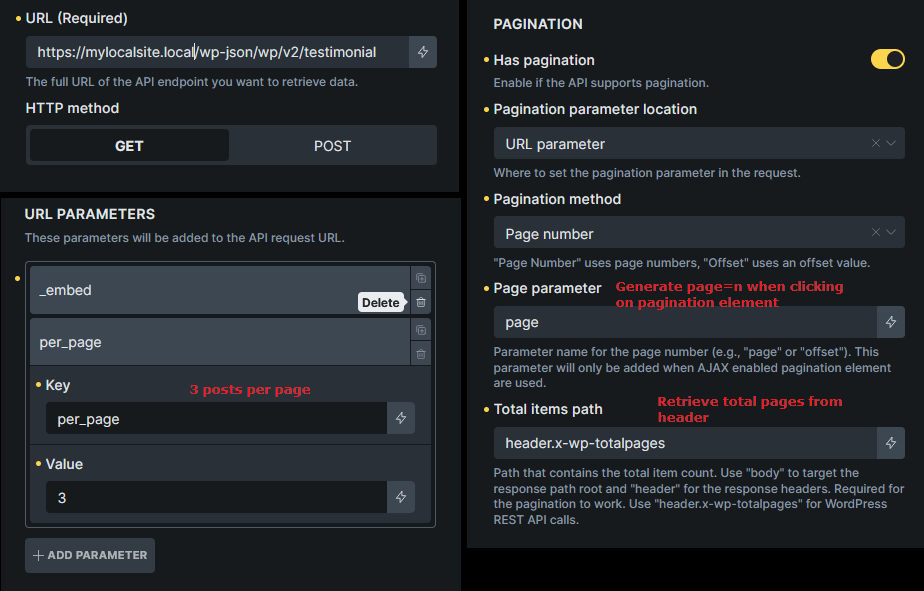 per_pageto define how many items to load per page (e.g.,per_page=3) -