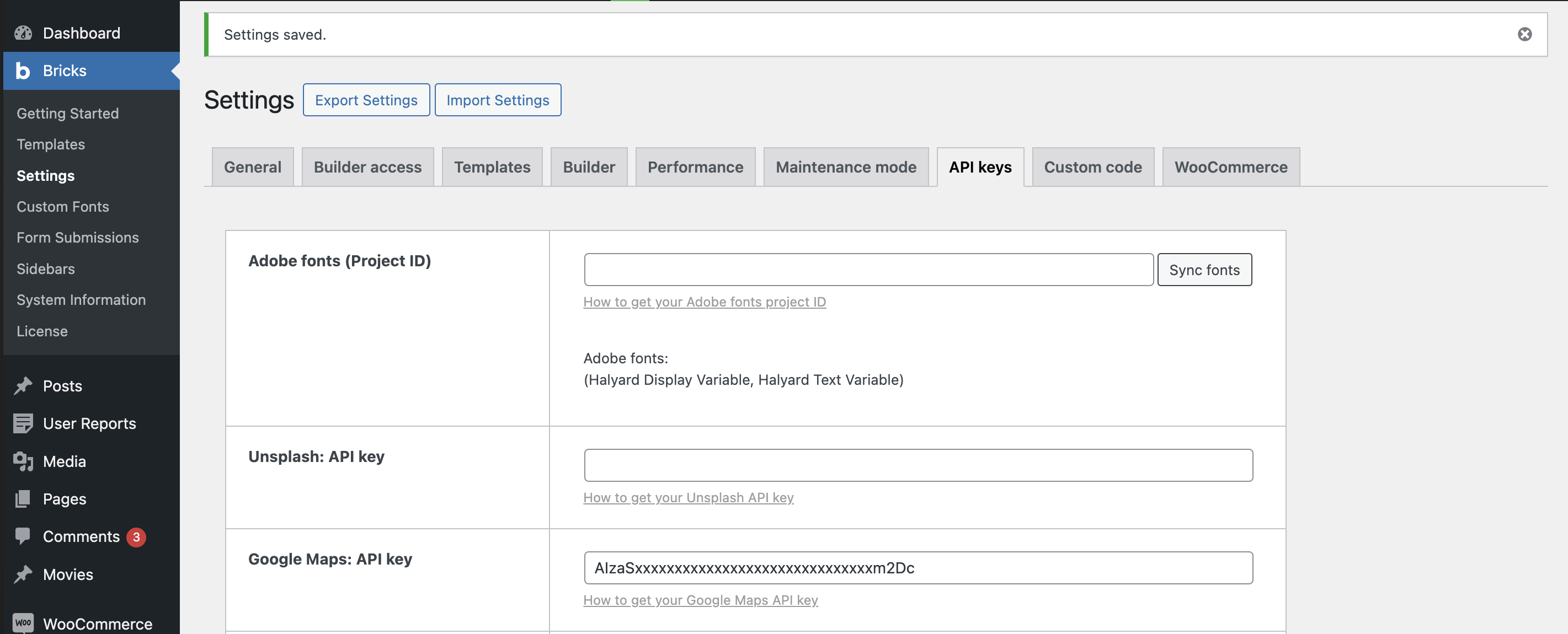 Section titled “Spam protection (Google reCaptcha V3)”The Bricks form element supports the latest Google reCaptcha V3 mechanism. To enable it, first, create a site key and a site secret key and then add both in your admin area under “Bricks > Settings > API keys”.
