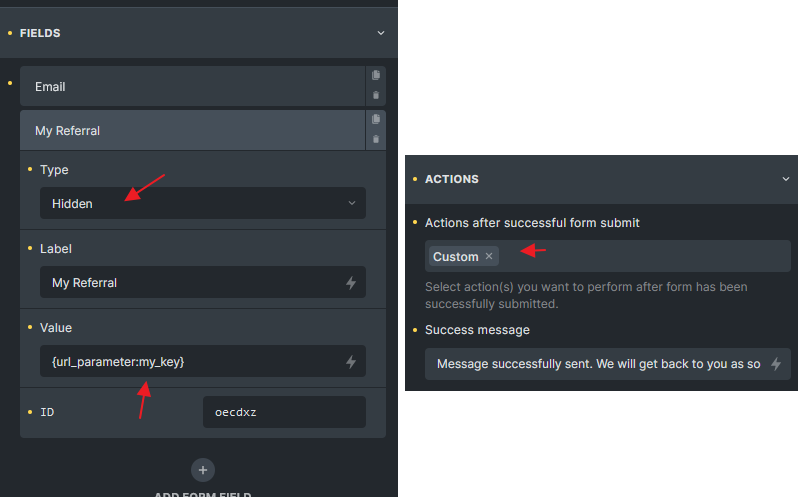 In certain scenarios, it could be useful to get some of the submitted form fields’ content to populate the email action settings.