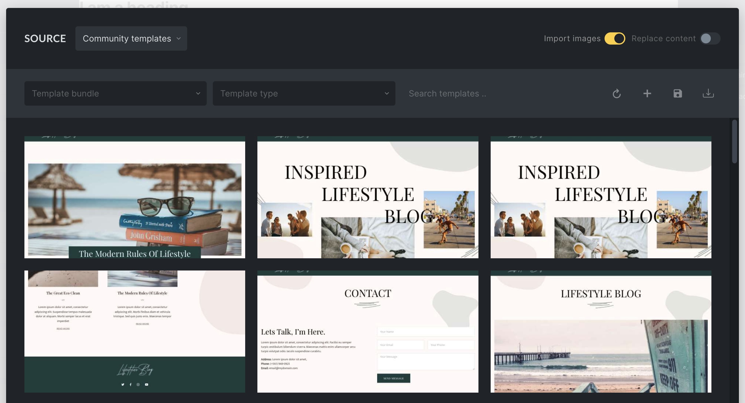 Section titled “Pre-Designed Community Templates”Browse our ever-growing collection of pre-designed templates right from within the builder.