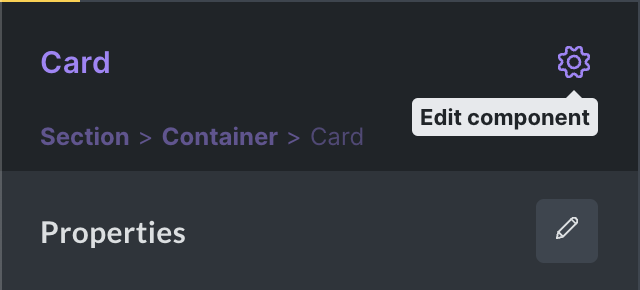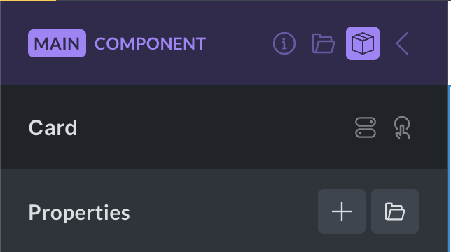 If you are editing the main component, you can access the Properties panel by clicking the “box” icon in the panel header (highlighted in the screenshot below).