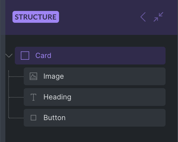 Now that you are editing the main component you can see and edit all elements of this component in the structure panel: