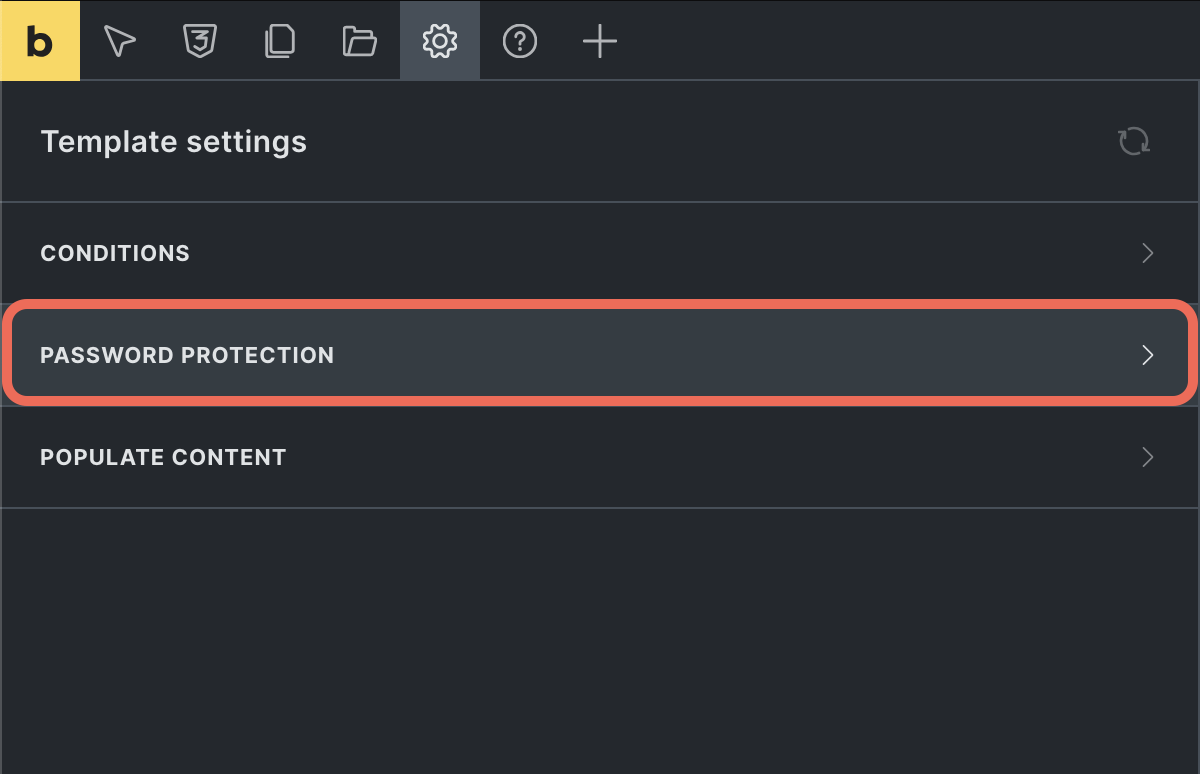 Section titled “Template password”Selecting Template password applies the password set in the template settings to all pages or posts that meet the template conditions. No further configuration is needed on individual posts. Simply: