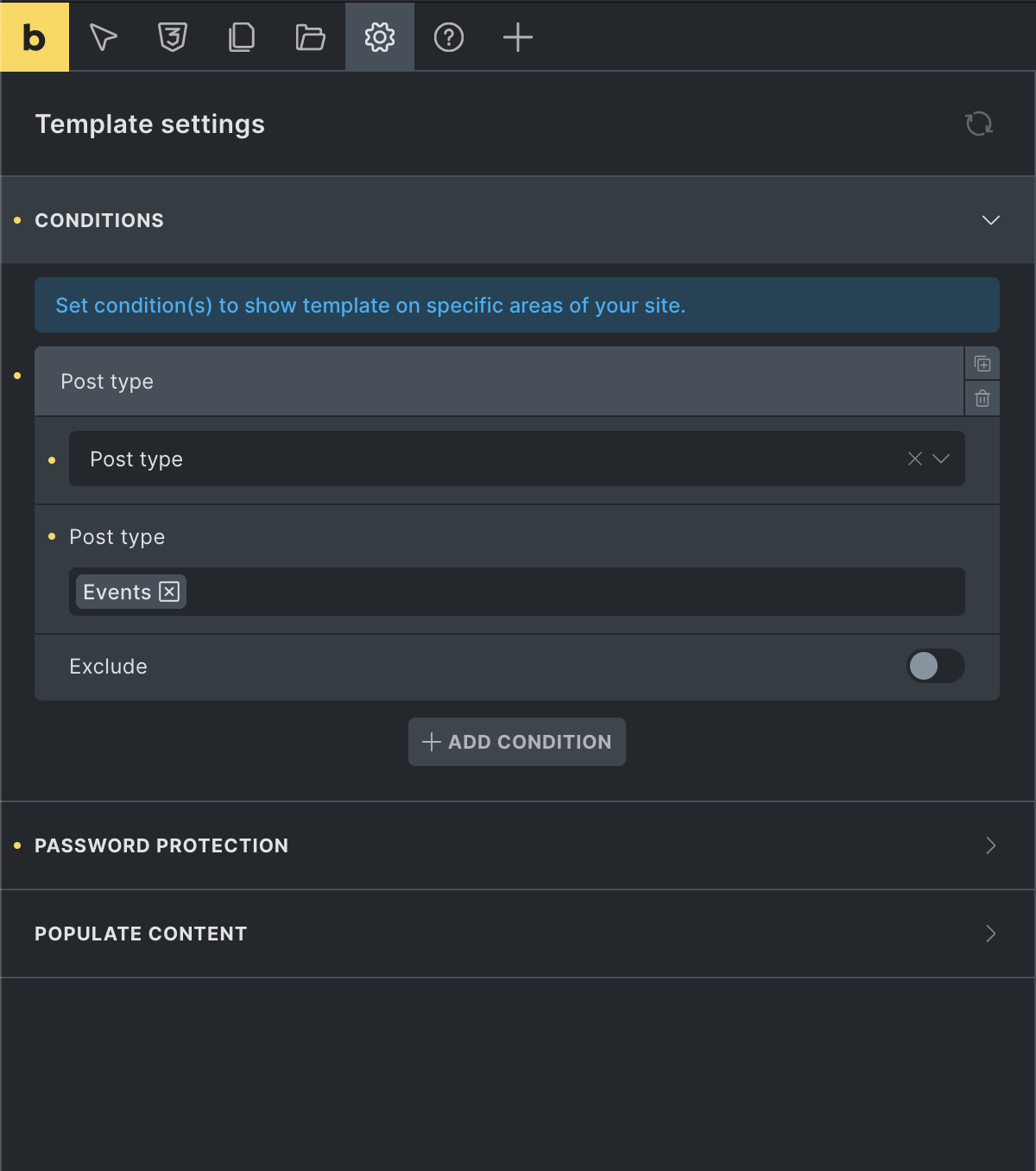 Define template conditions as needed to apply the password protection across relevant content.
