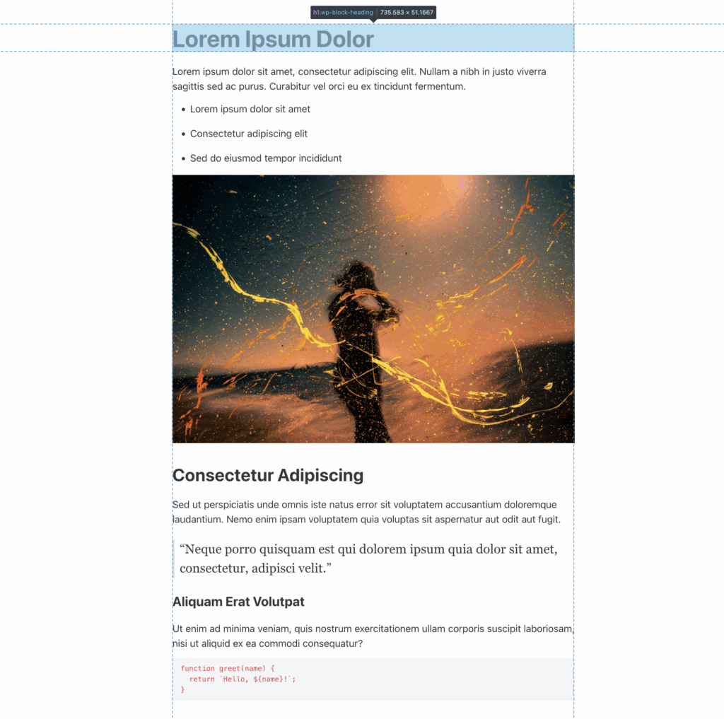 Section titled “Example use case 1: Embedded post content”You’re building a single post template using a Post Content element (source: WordPress).