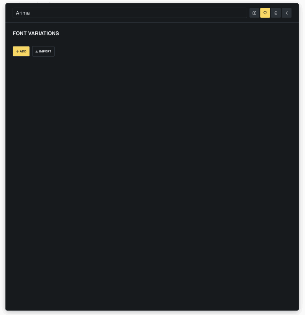 Add variant manually: Click the Add button to upload a single font file. Set the font’s weight and style individually.
