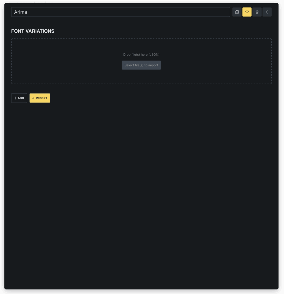 Import multiple variants: Click Import to drag and drop or select multiple font files. Bricks will automatically upload and organize them by weight and style.