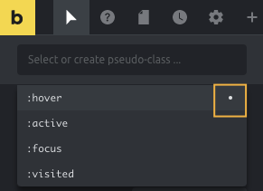 Section titled “How to edit a specific element state or part of an element”Click the “cursor” icon in the builder toolbar to toggle the pseudo-class menu:
