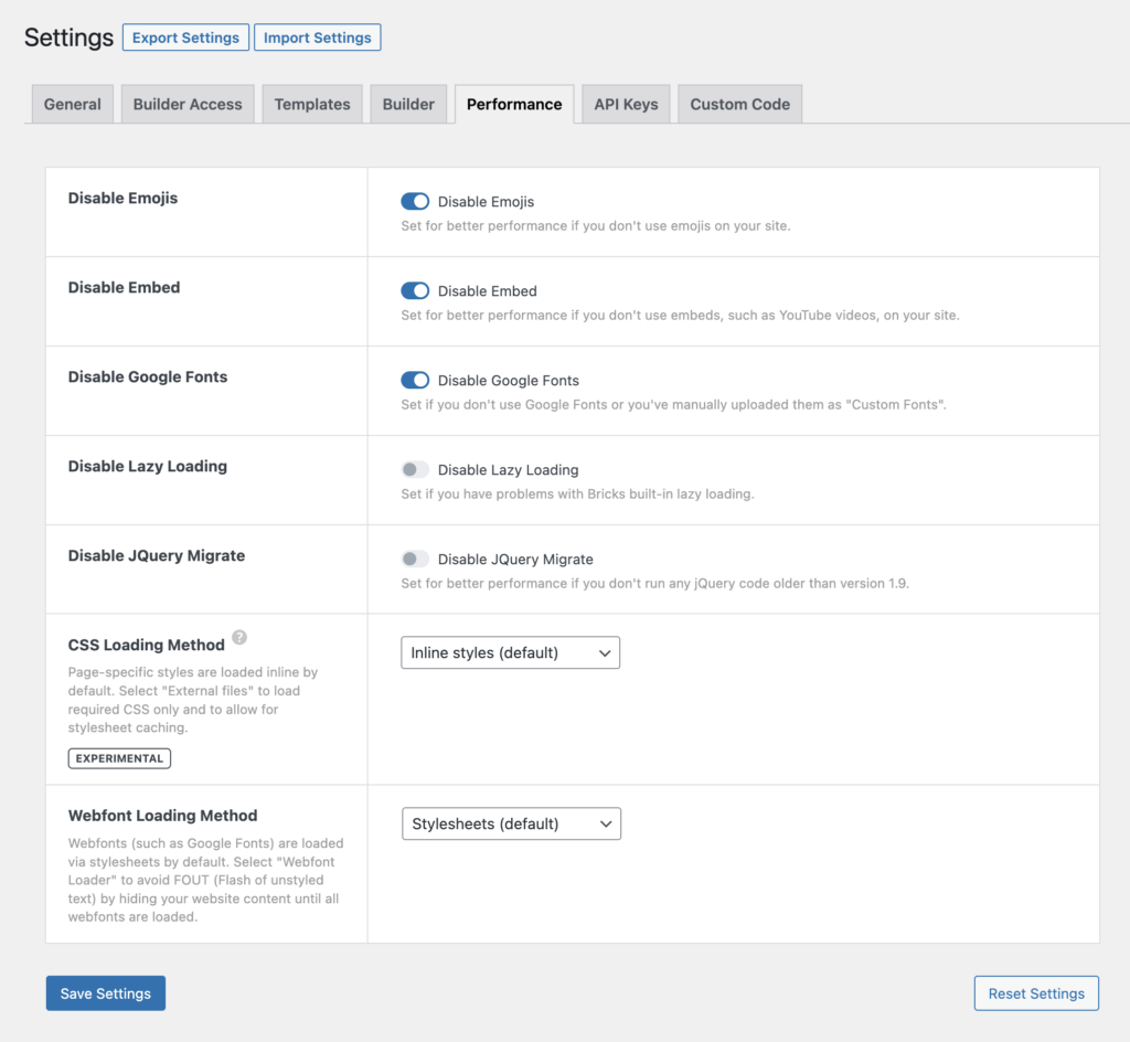 // Prevent Google Fonts loadingadd_filter( 'bricks//assets/load_webfonts', '__return_false' );If you use this filter to remove the embed of Google Fonts but you still like to use Google Fonts, just head to the Google Fonts website and download the fonts you need. Then, add them manually to your website, using the Custom Fonts screen.
