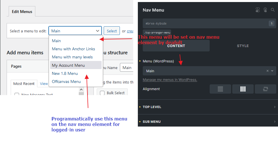 This can be useful for displaying different menus to guests and logged-in users without using multiple Nab Menu elements and Bricks conditions.