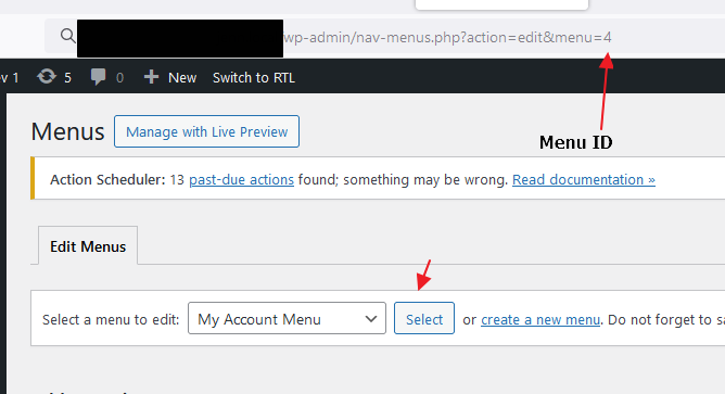 You can retrieve the menu ID via the URL parameter after selecting it.