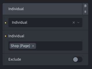 Or you could add a template condition in your WooCommerce - Product Archive template so this template is used for the Shop page as well. In this case, you would need to set the template conditions to target the shop page individually like so: